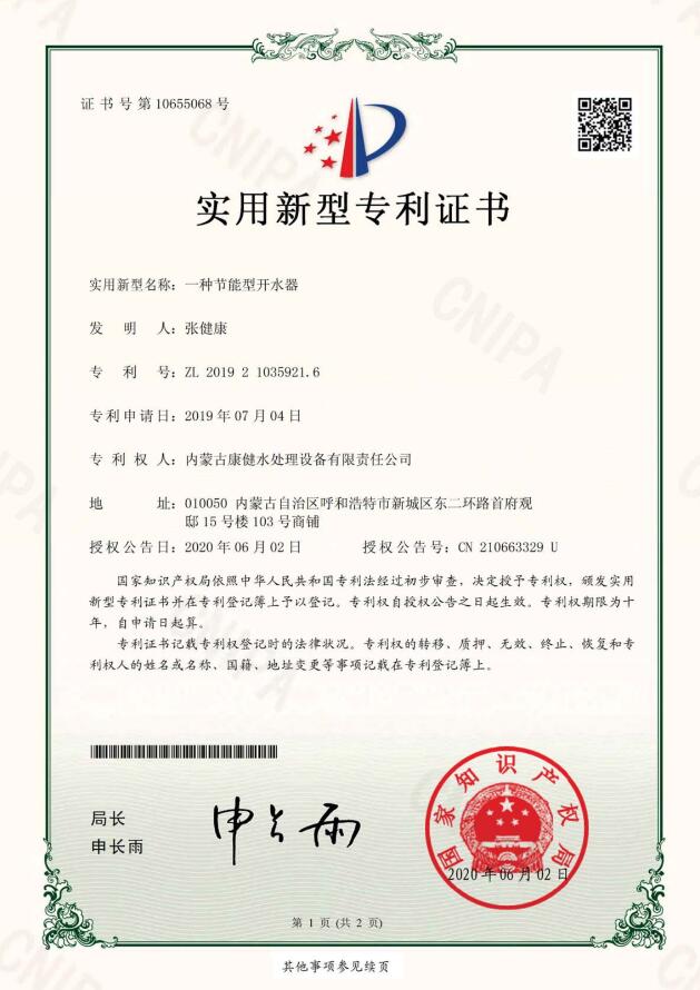 - 內(nèi)蒙古康健水處理設(shè)備有限責(zé)任公司是專業(yè)生產(chǎn)制造水處理設(shè)備、飲料設(shè)備、奶設(shè)備、殺菌設(shè)備、灌裝設(shè)備五大系列90余種配套產(chǎn)品。在反滲透、超濾、納濾、EDI模塊、等膜分離領(lǐng)域有著雄厚的技術(shù)實(shí)力,同時(shí)在水廠設(shè)計(jì)、中水回用、污水處理、分質(zhì)供水、無(wú)負(fù)壓變頻供水、鍋爐軟化水設(shè)備等領(lǐng)域有完善的技術(shù)團(tuán)隊(duì)和營(yíng)銷網(wǎng)絡(luò)。公司坐落在遼闊大草原上美麗的首府——呼和浩特,是內(nèi)蒙古自治區(qū)唯一一家具有自主生產(chǎn)能力的企業(yè)。 “上善若水,水利萬(wàn)物而不爭(zhēng)”康健水工自成立以來(lái),始終堅(jiān)持“改善水質(zhì)、造福人類、服務(wù)社會(huì)、產(chǎn)業(yè)報(bào)國(guó)”的企業(yè)信條,以致力于開創(chuàng)人類綠色健康生活為己任,秉承“關(guān)愛生命、責(zé)任至上”的企業(yè)宗旨,成就了享譽(yù)四方的國(guó)內(nèi)知名水處理企業(yè)。 水是生命的源泉、工業(yè)的血液、城市的命脈。水是不可替代的寶貴資源。節(jié)約用水,關(guān)注點(diǎn)滴 為節(jié)約水資源貢獻(xiàn)一份力量, 健康飲水,利在當(dāng)代,功在千秋! 只有在這里,才能領(lǐng)會(huì)水的精髓;只有在這里,才...